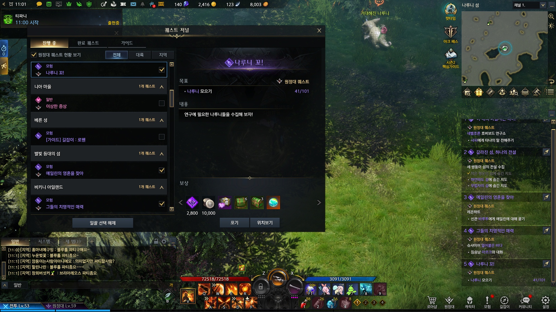 위의 나루니 101마리 모으기 퀘스트만 깨면됨
