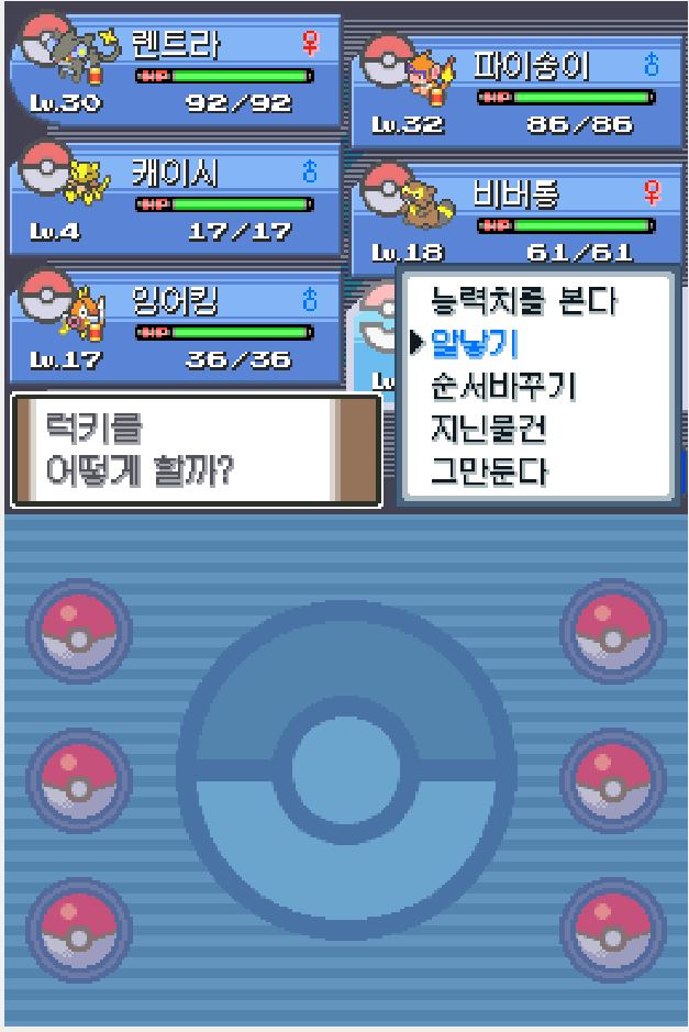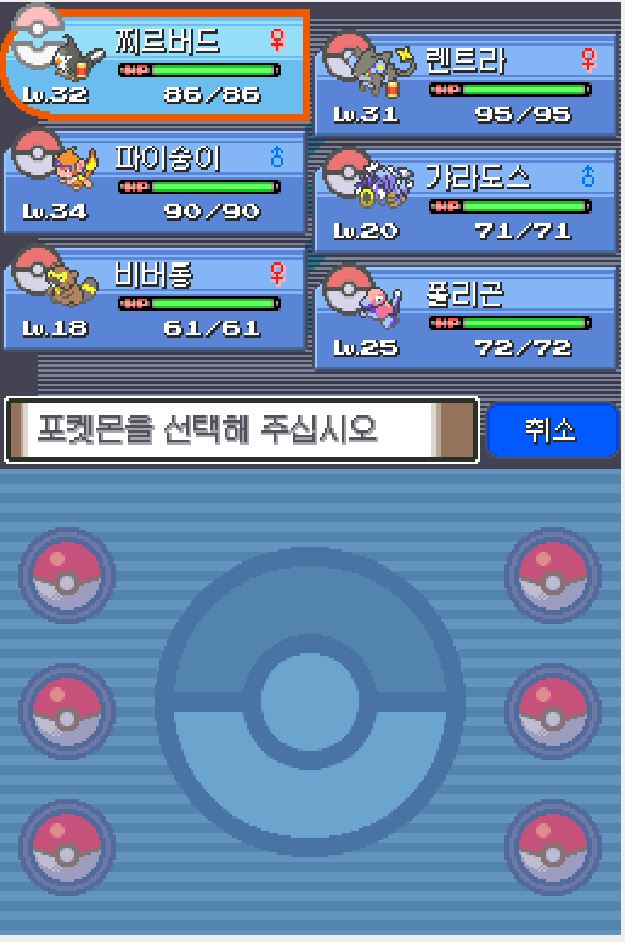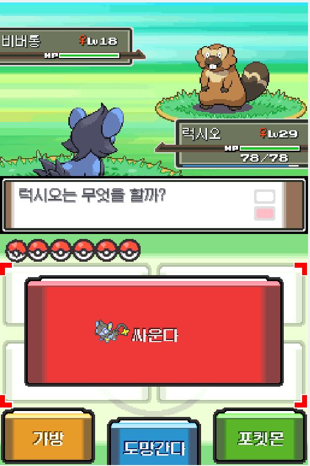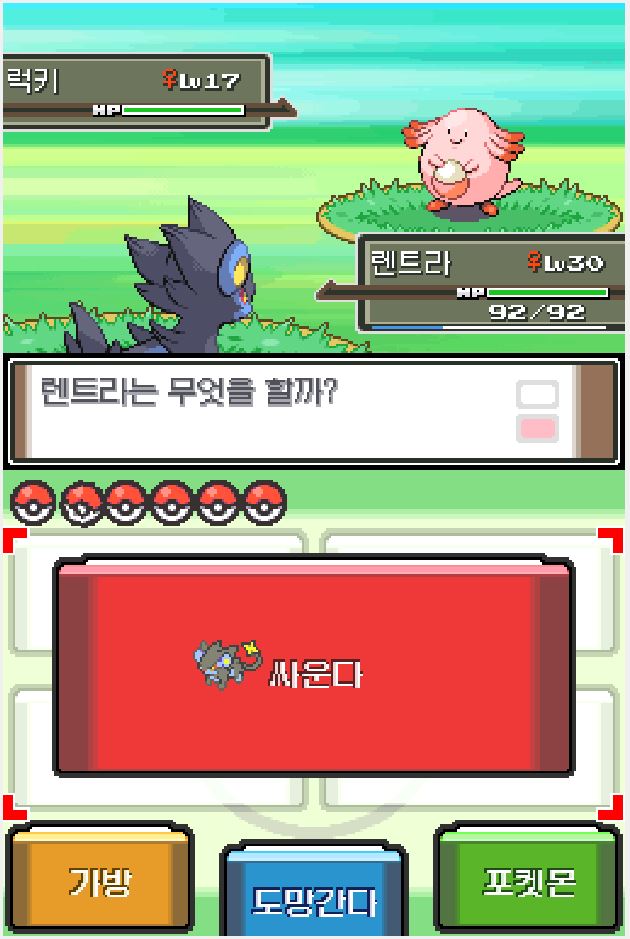 <럭키의 알낳기를 기술을 사용하면 럭키의 체력을 소모하여 다른 포켓몬 체력 보충 가능>