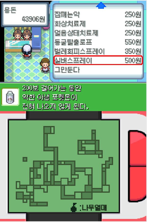 상점에 들러 실버스프레이를 구입해줍니다.(필자는 30개 구입)