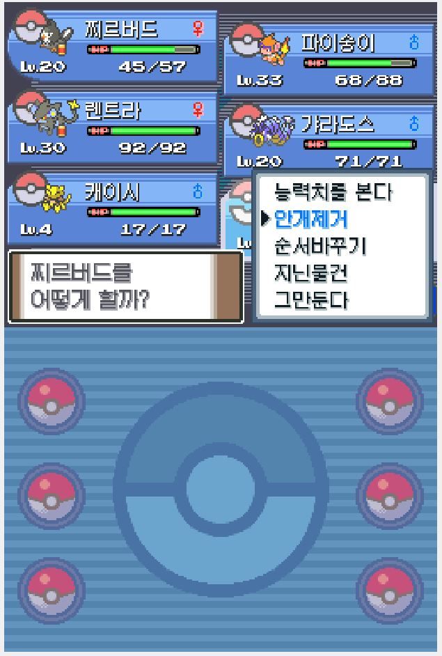 (잉어킹은 매우 약하므로 학습장치를 착용하여 일단 레벨20찍어서 갸라도스로 만듭시다.)