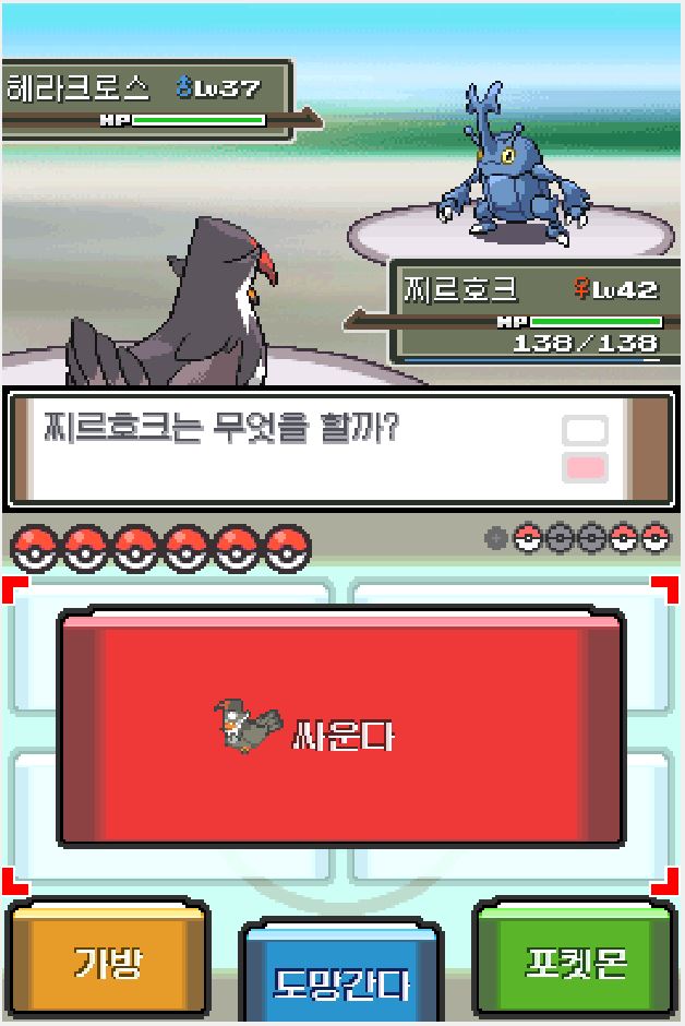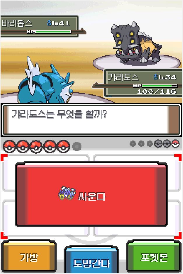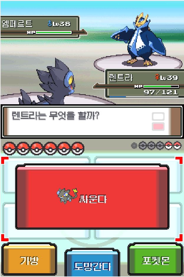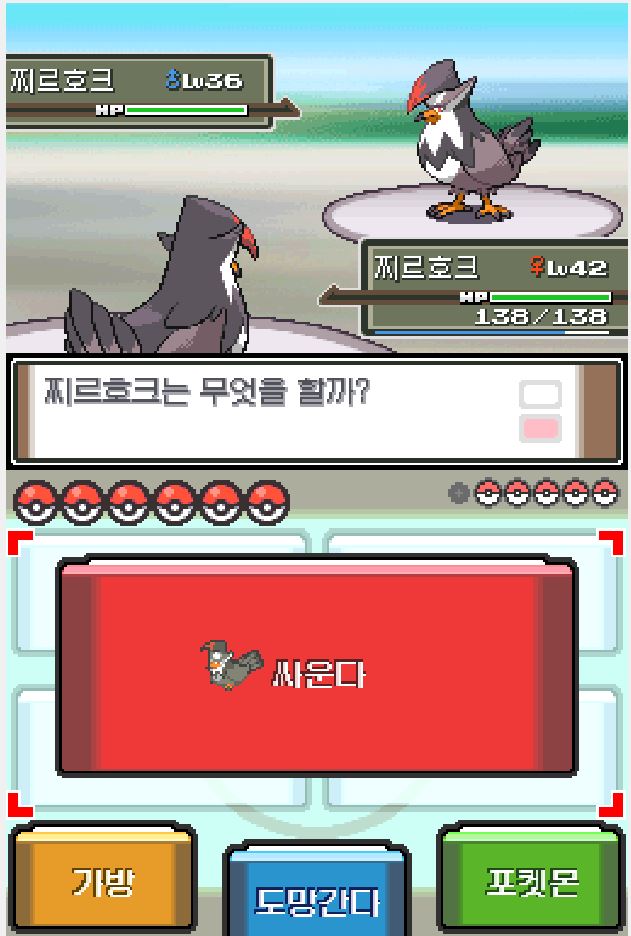 입지호수 근처까지 쫓아가게되면 더이상 도망가지 않고 배틀을 하게 됩니다.