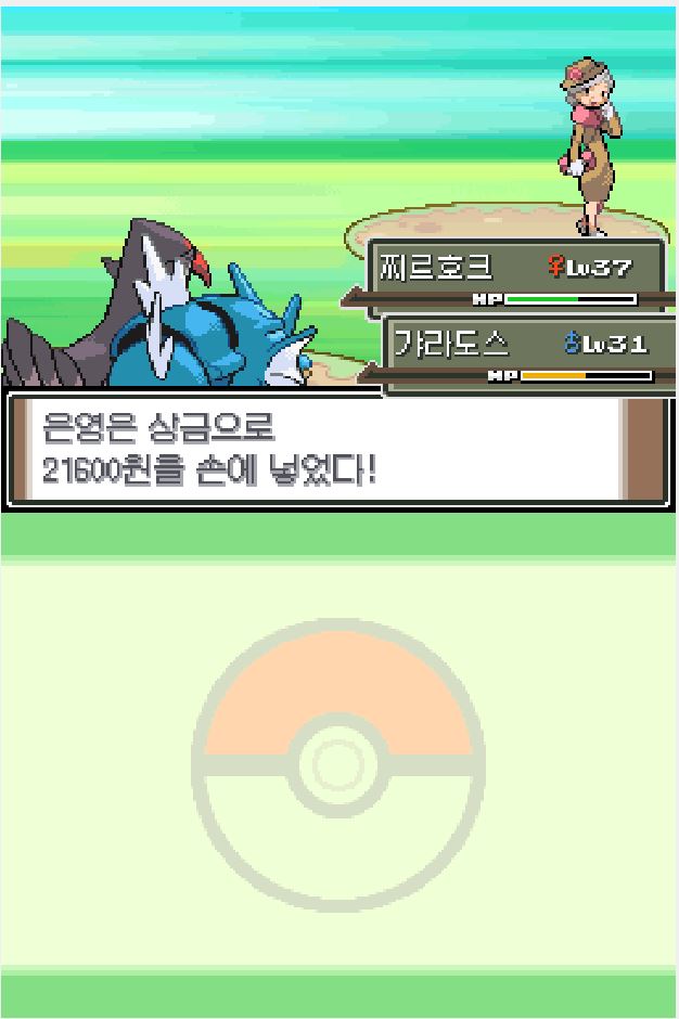 들판시티 체육관장 맥실러를 클리어하고 난 후입니다.