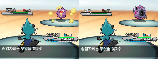 필자는 수댕이가 진화할때까지 포켓몬을 육성(lv17)하고 도전하였습니다.