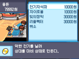 뇌문시티 포켓몬센터 옆에 위 스샷처럼 천둥의 돌이 있으니 입수하도록 하고