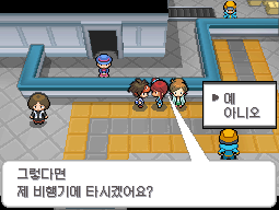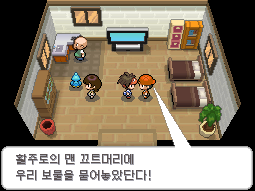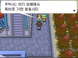 포켓몬센터에서 나와 어슬렁거리고 있는 라이벌 앞으로 지나가면