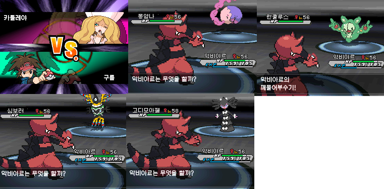 <카틀레야의 포켓몬 : lv56 몽얌나, lv56 란쿨루스, lv56 심보러, lv58 고디모아젤>