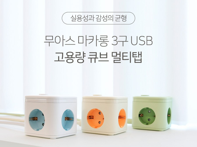| 제품명 | 무아스 마카롱 USB 고용량 큐브 멀티탭 3구 |